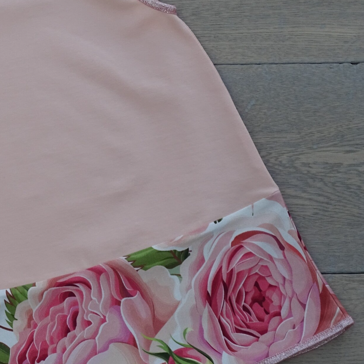 Jurk grote print : rozenband, uni roze