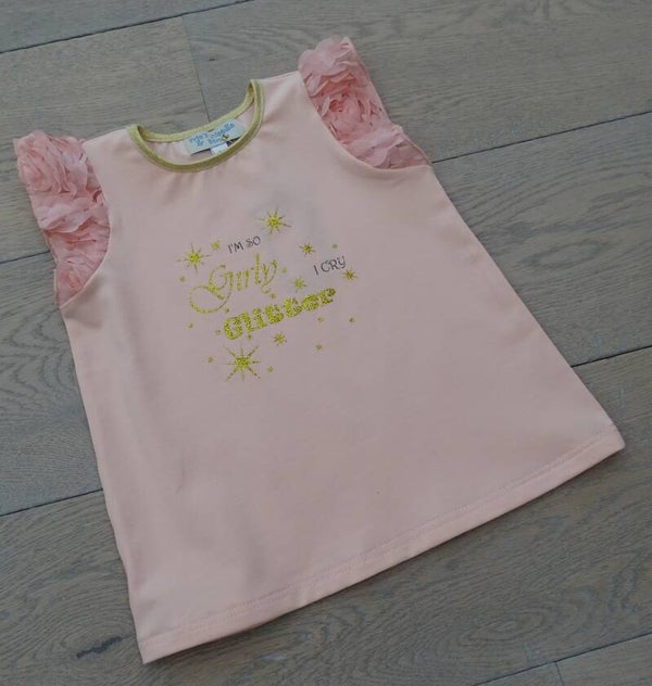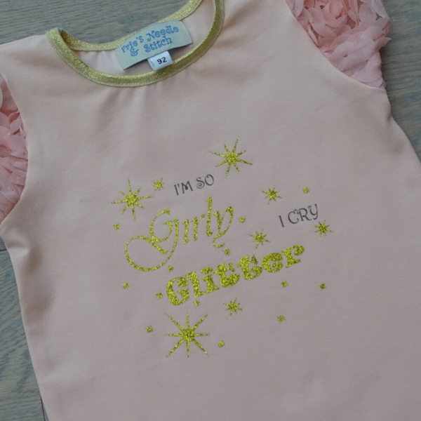 T-shirt topje, gouden bedrukking: I'm so girly, i cry glitter
