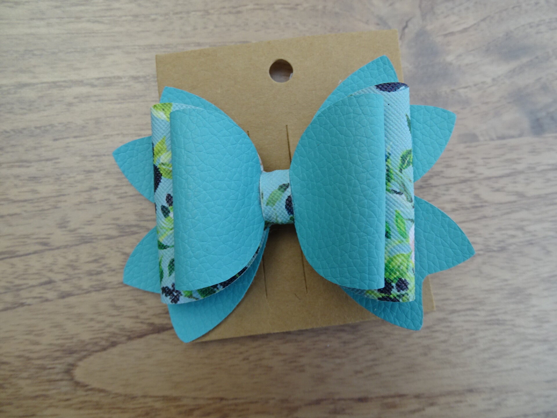 Haarspeld strik turquoiseblauw/bloemen