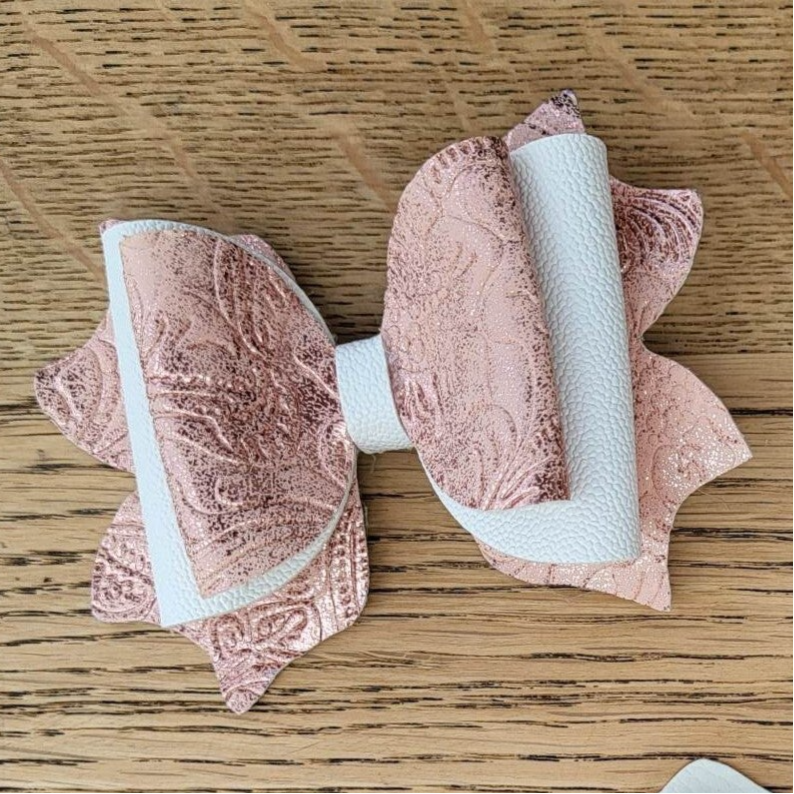 Haarspeld strik Rosé/wit