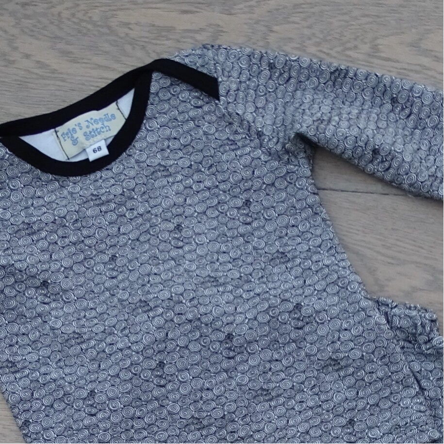 Babyshirt, zwartgrijze print krul, halsopening overslag