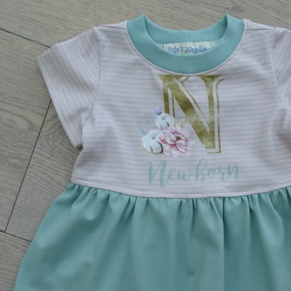 Jurk oudroze grote print Newborn/zachtgroene fronsrok