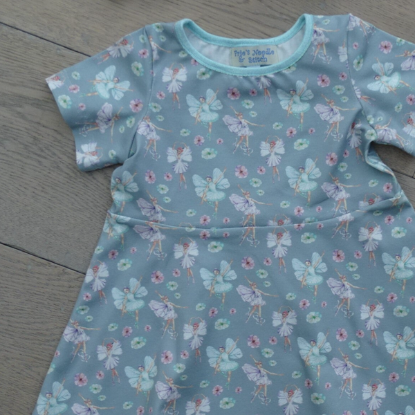 Jurk elfjes ballerina zachtgrijs, kleine print, A-lijn rok