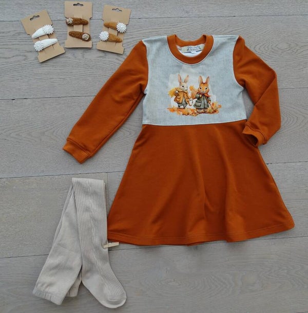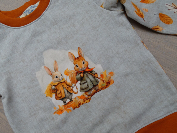 mouwen, achterpand en rok, blaadjes of uni roest