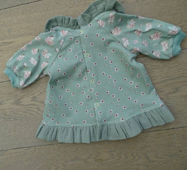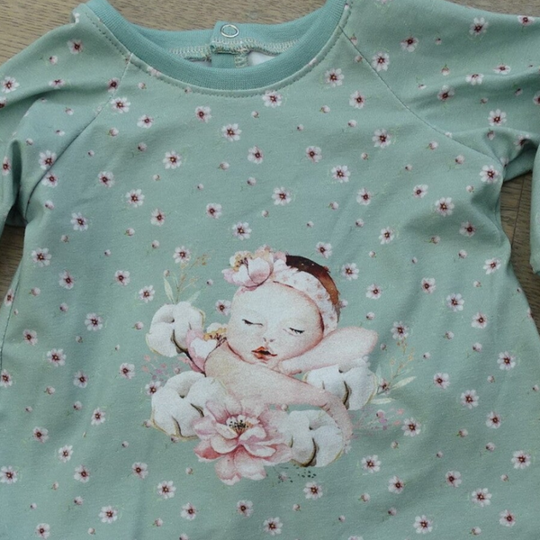 shirt met grote print newborn baby, frulle afwerking, legging gauze mint
