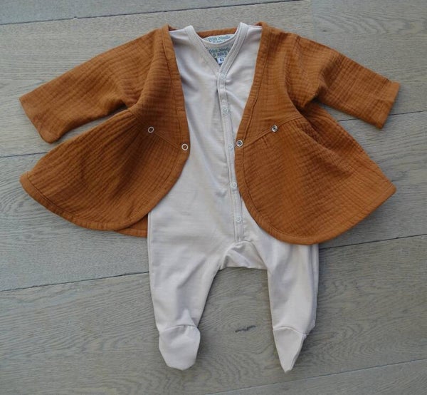 babysetje bestaat uit: overslagjurk gauze en boxpakje tricot
