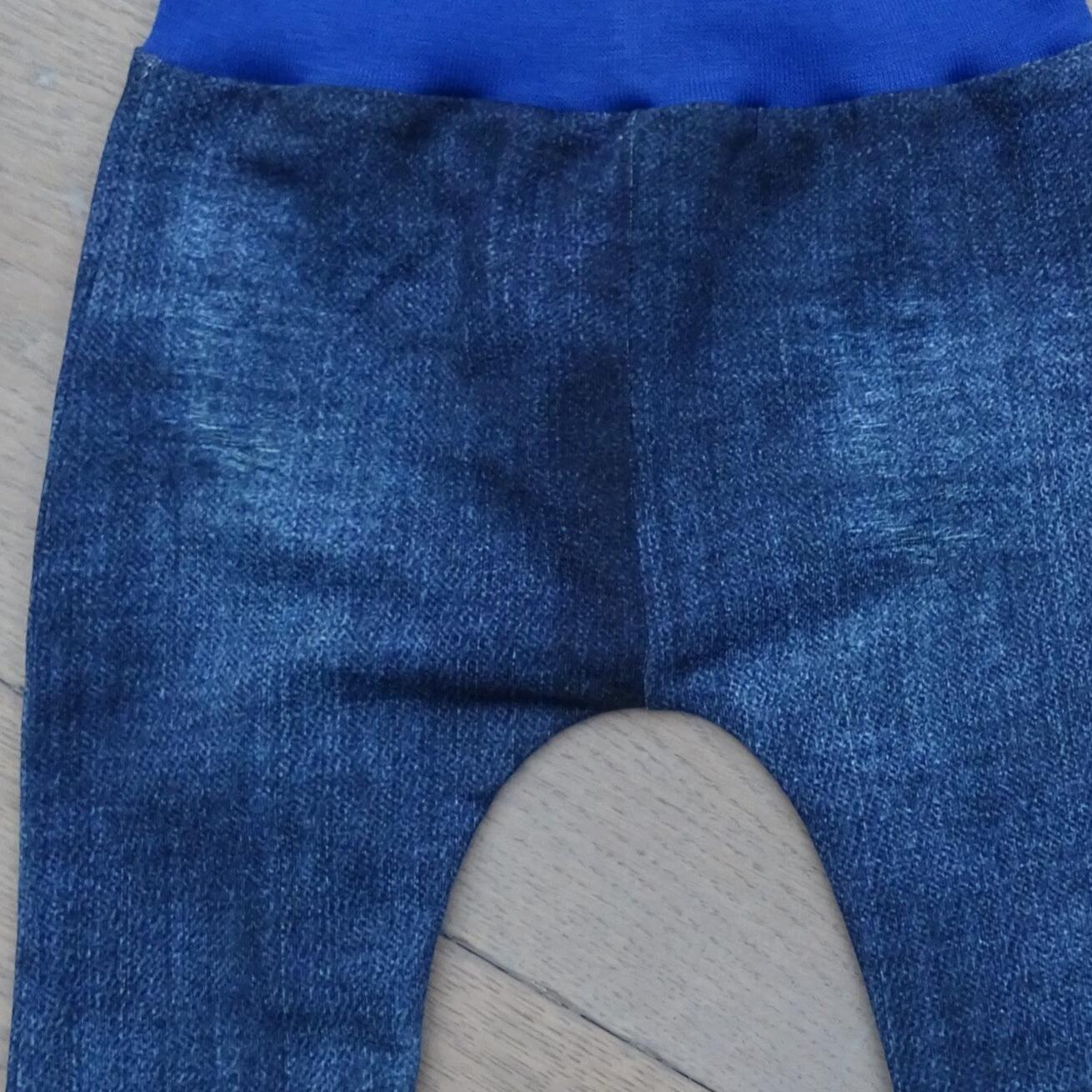Babylegging met elastische boordstof. (geen jeansstof, katoentricot)