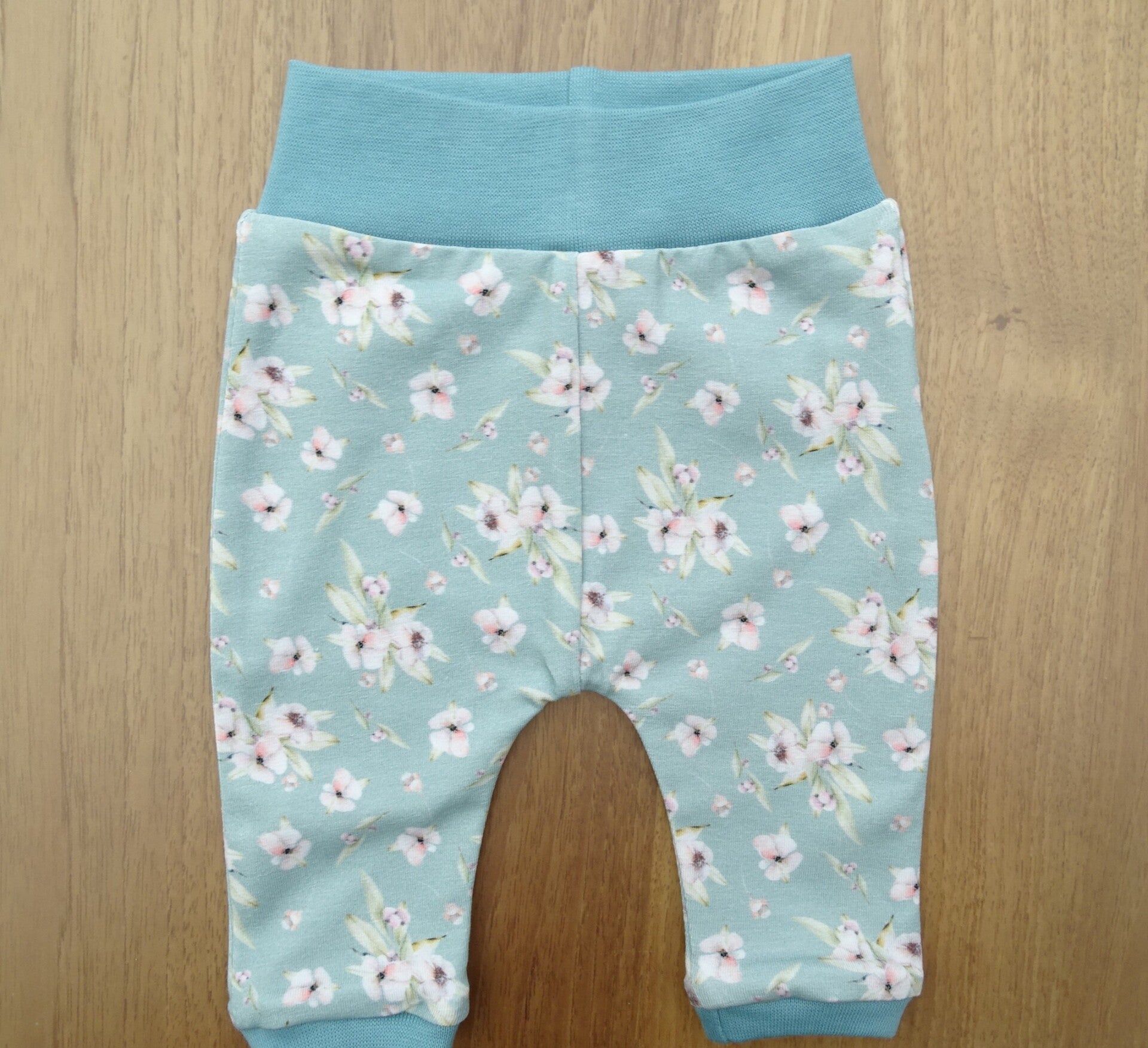 Babybroekje lichtgroen kleine bloemetjes