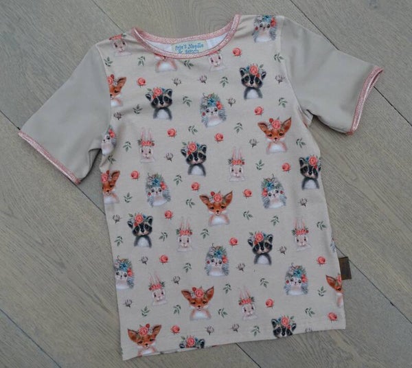 Rokje uni beige/T-shirt kleine printstof vosjes