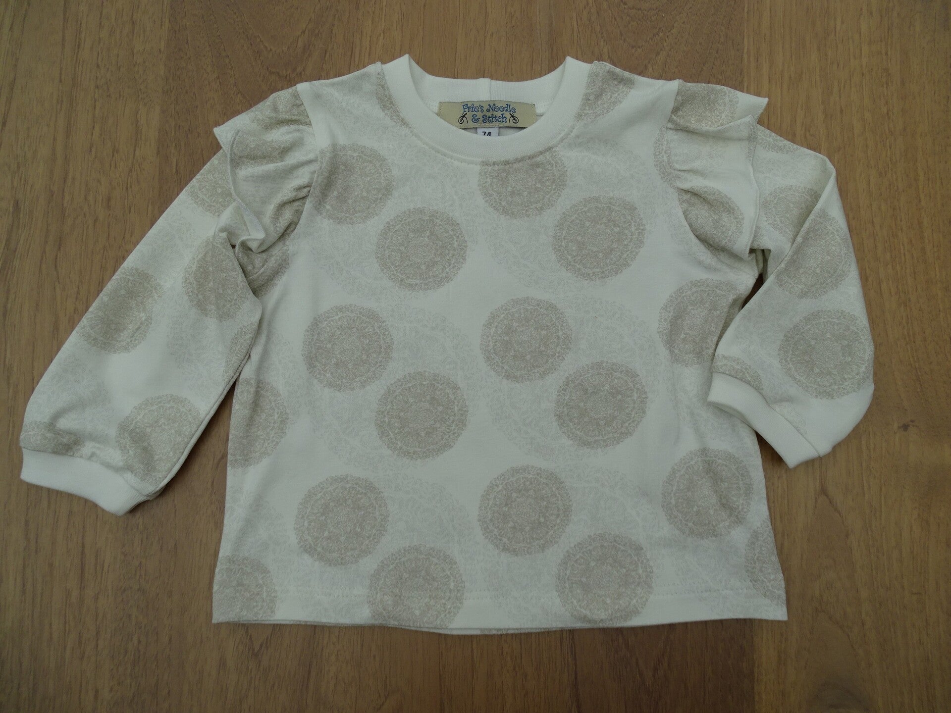 ribfluweel ecru/ beige zachte bolprint