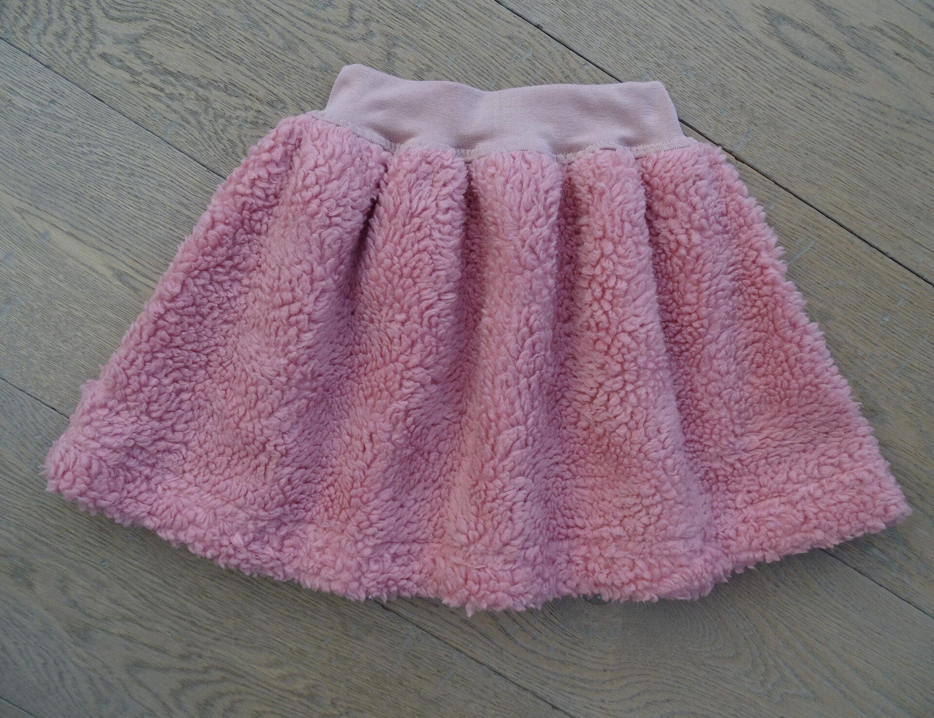 set rimpelrok roze teddystof met sweater taupe + borduur unicorn