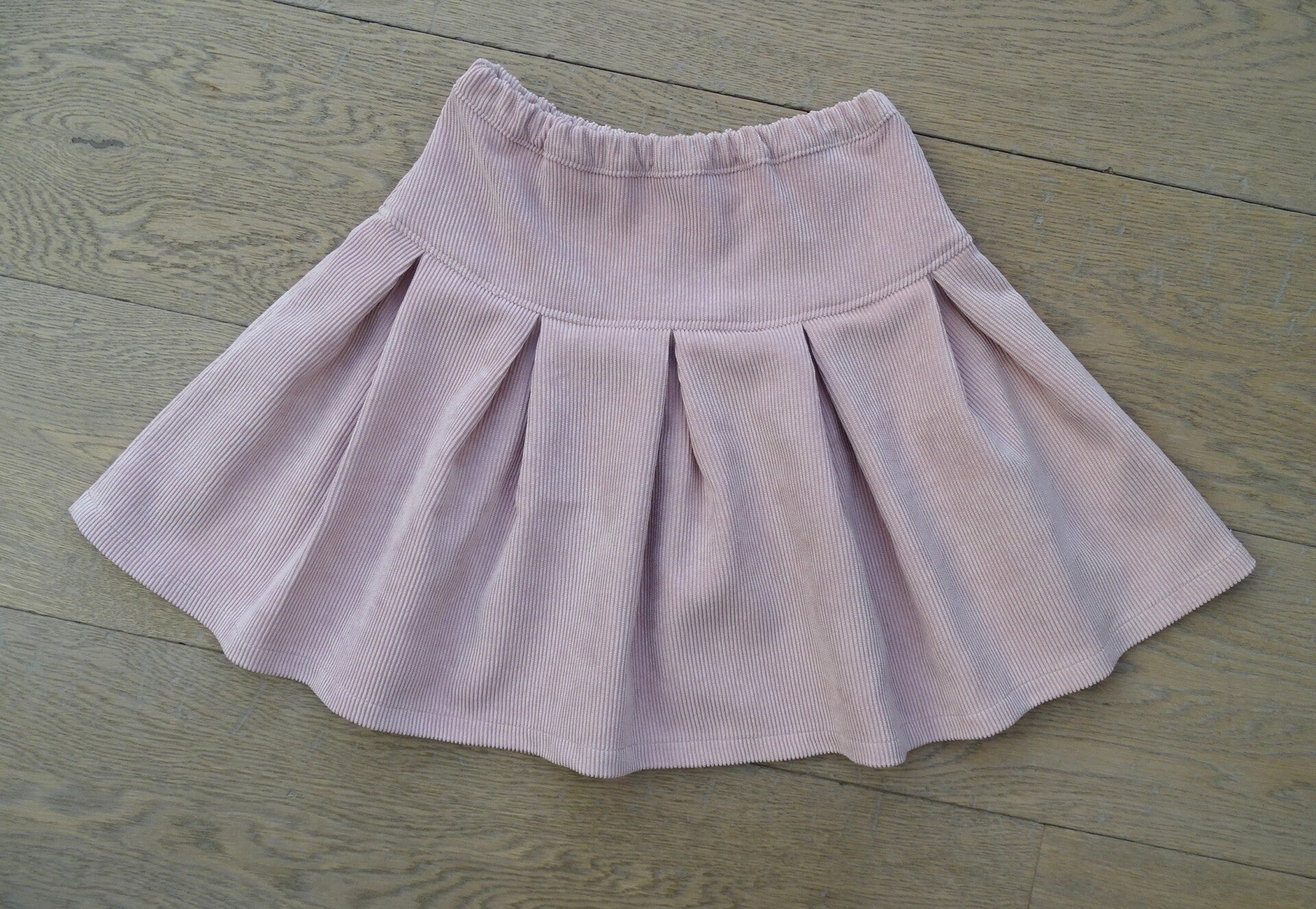 set: oud roze rok plooien corduroy + sweater borduur meisje blaasbloem