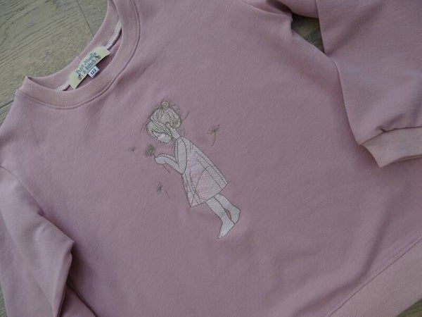 corduroy roze/ uni oud roze met borduurtekening meisje blaasbloem