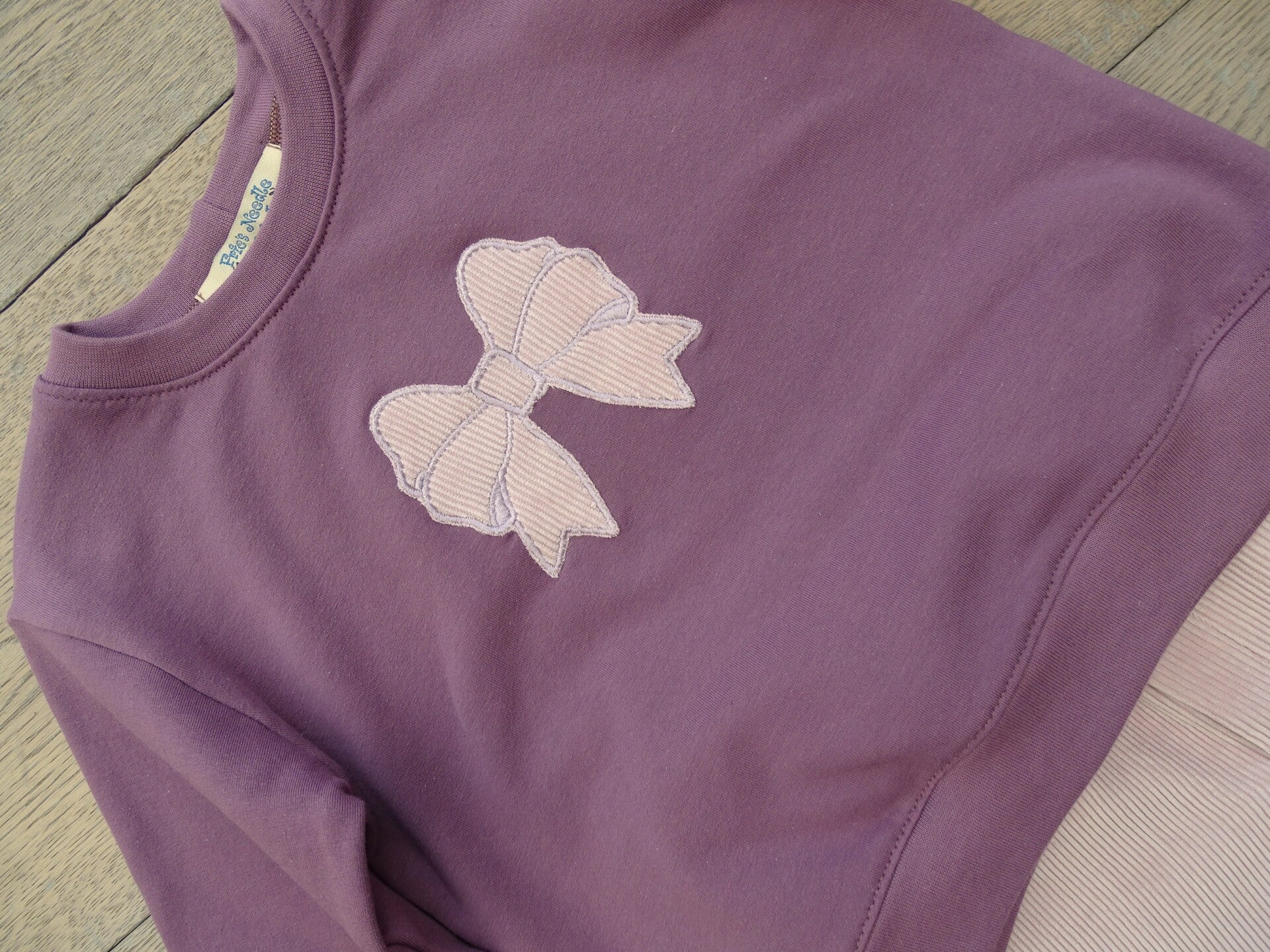 corduroy roze/ uni paars met applicatie corduroy strik