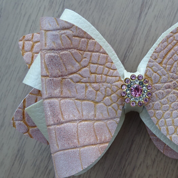 haarstrik croco zalmroze/ecru 3 lagen steentje, op speld.
