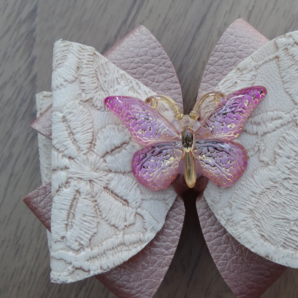 Haarspeld strik oudroze/ vlinder/kant