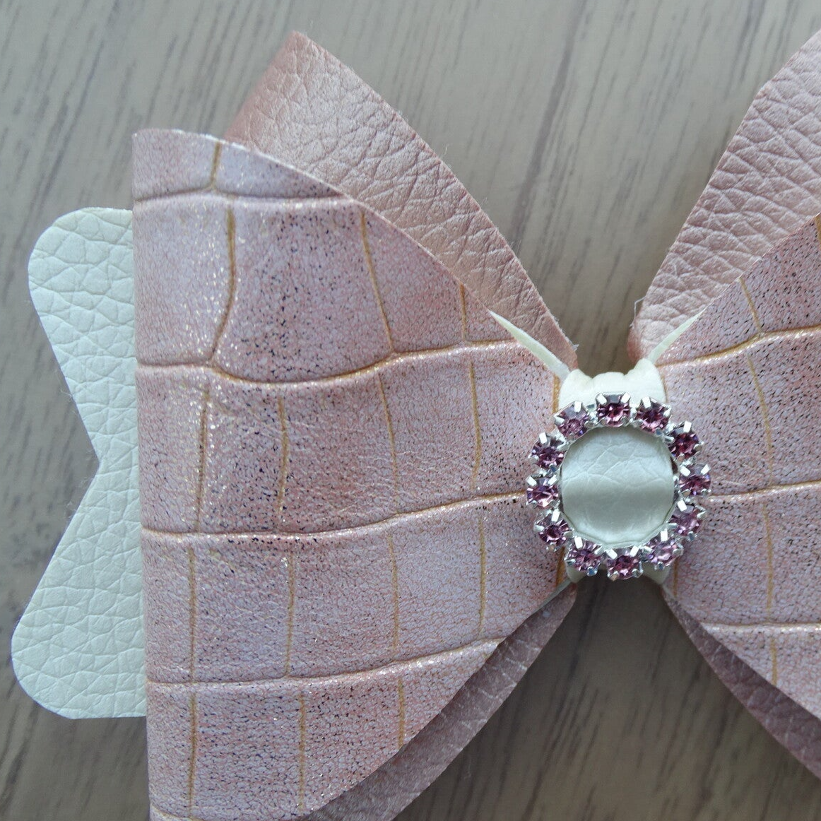 haarstrik zalmroze croco/ecru 3 lagen steentjes op speld.