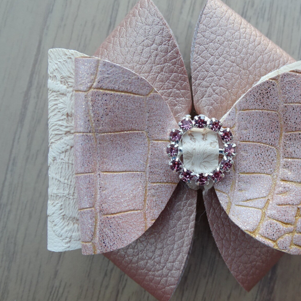 Haarspeld strik zalmroze croco/kant
