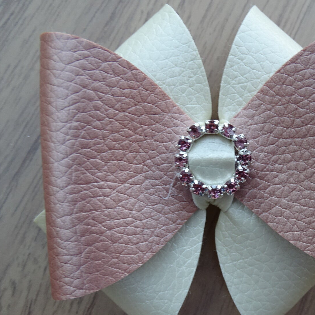 haarstrik oudroze/ecru 3 lagen steentje, op speld.