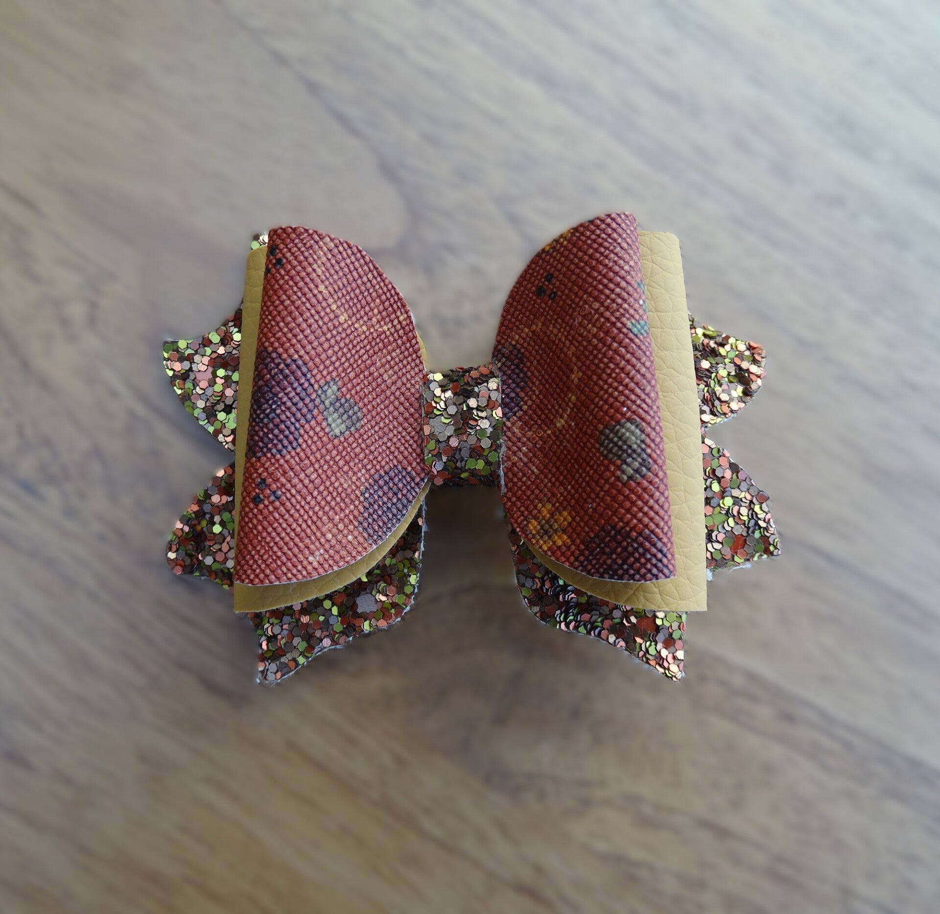 Haarspeld strik herfstbruin/glitter