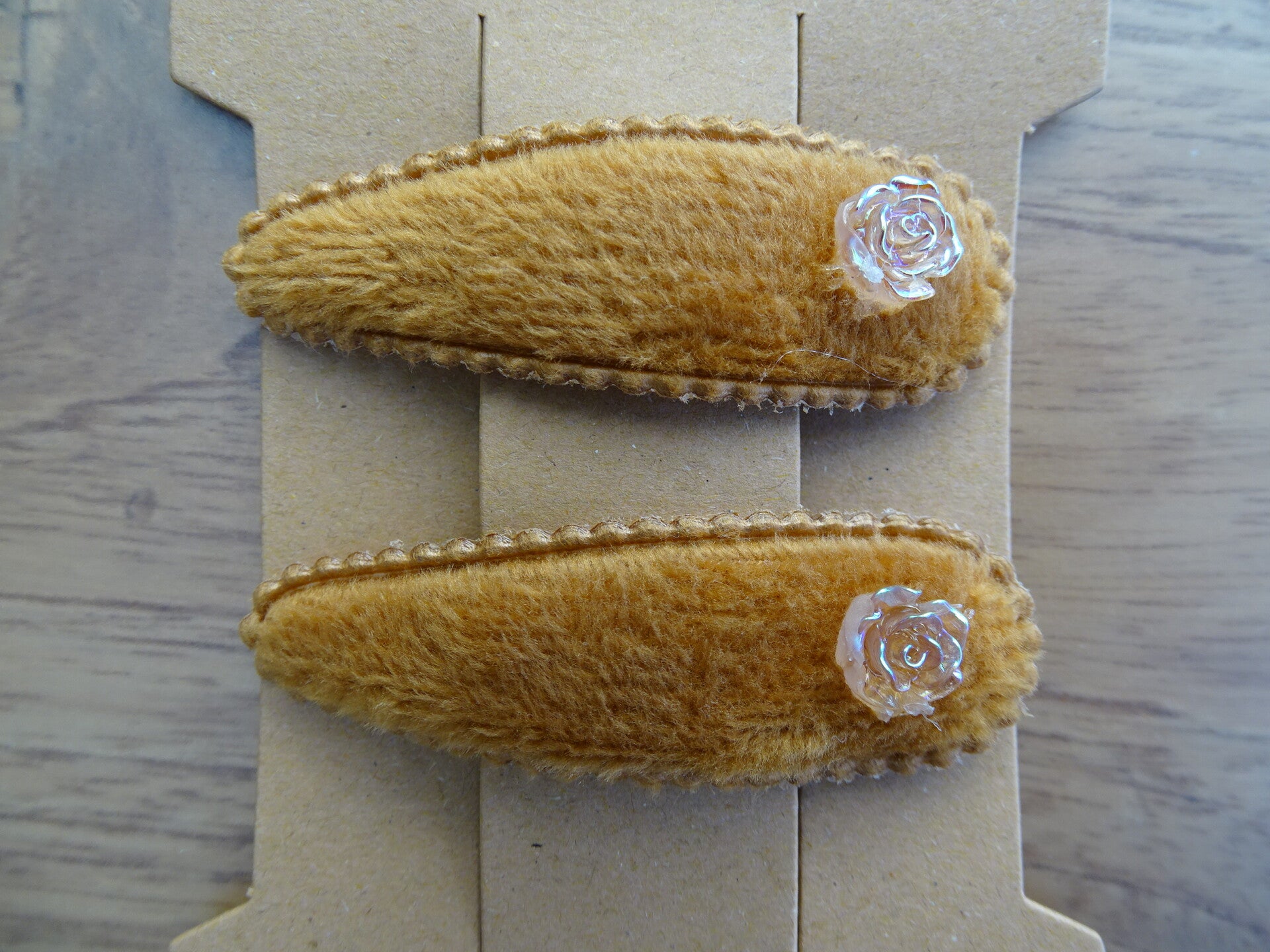 Clic-clac speldjes bruin fluweel roosje applicatie