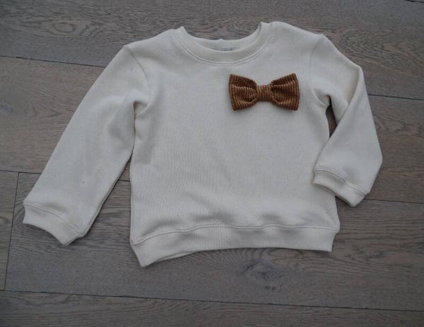 corduroy roestbruin/ uni ecru trui in breistof met 3Dstrik in roestbruin corduroy