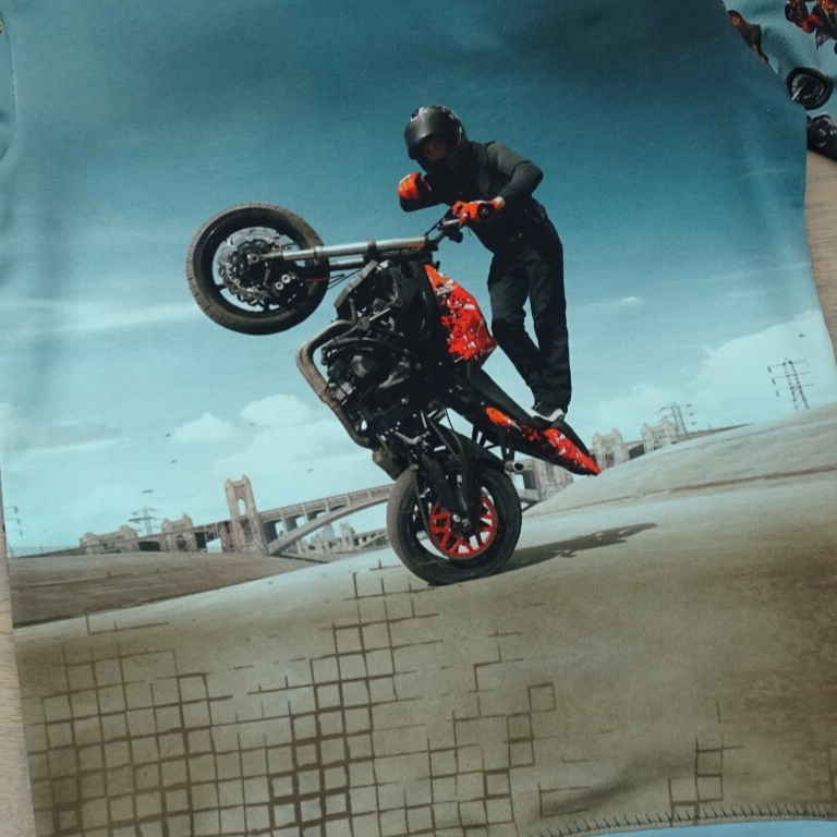 voorpand grote print/achterpand en mouw kleine print of uni groenblauw