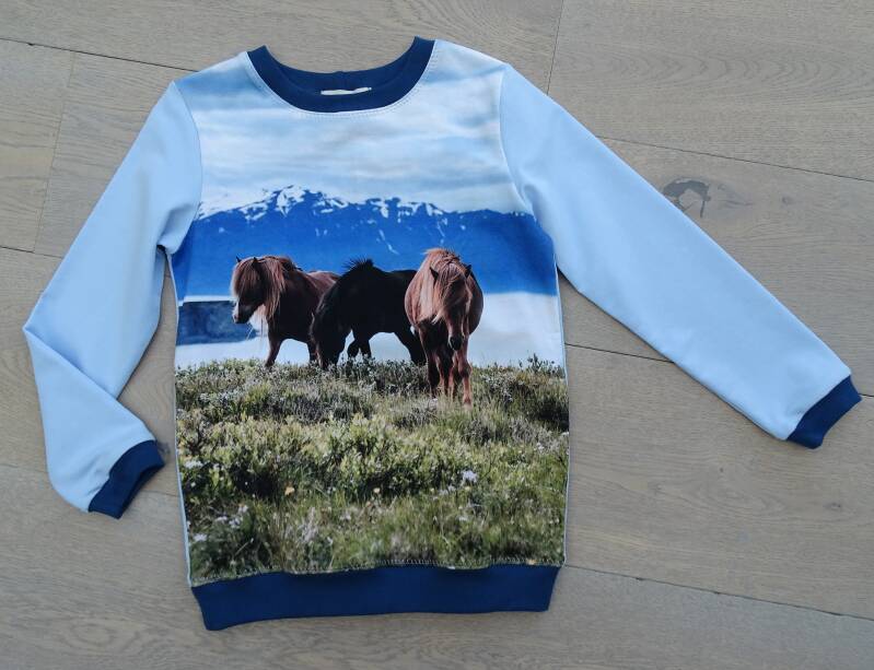 Sweater 3 paarden, felblauw/lichtblauw