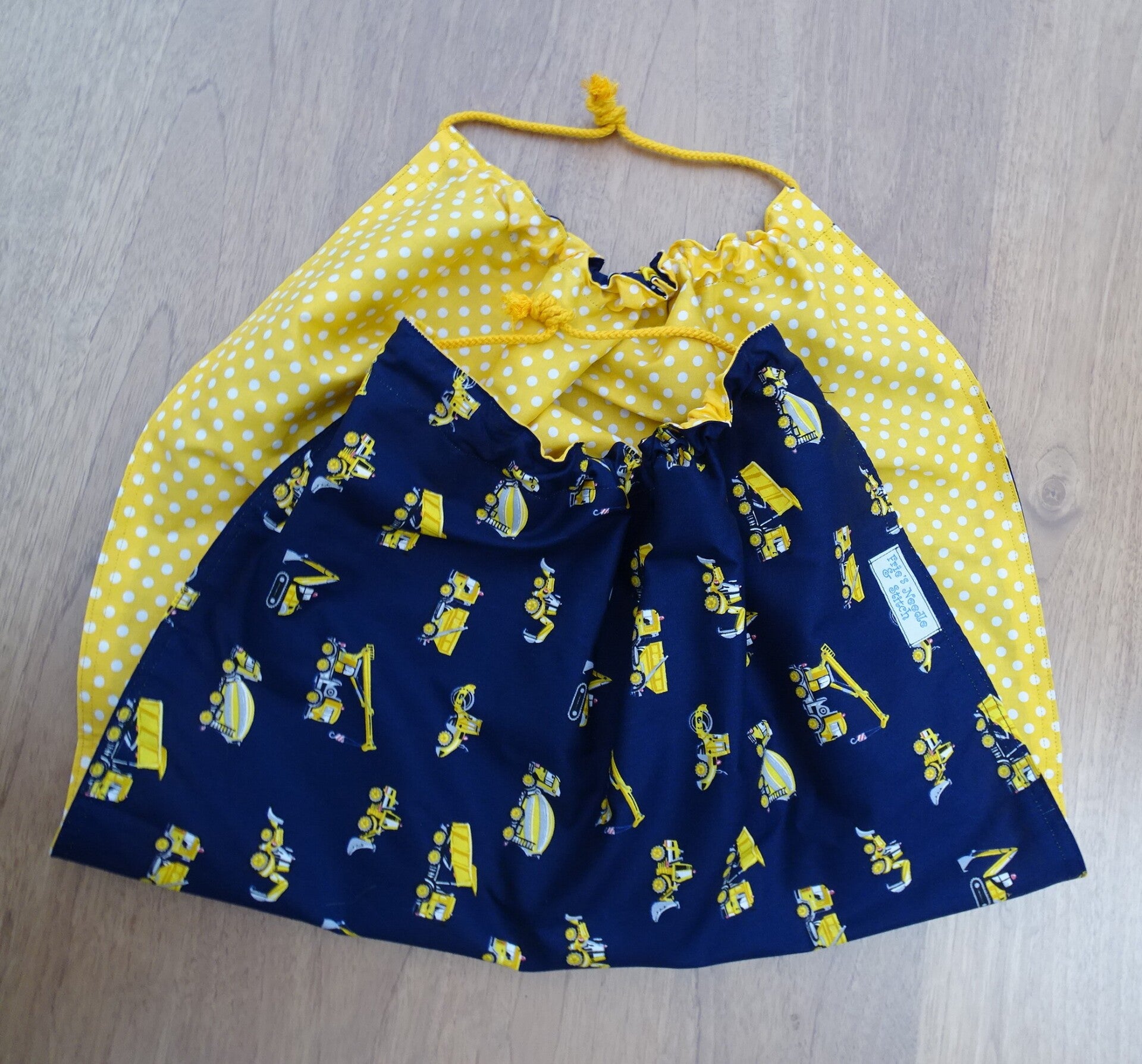 Kleur: geel bolletje/donkerblauw bouwmachines