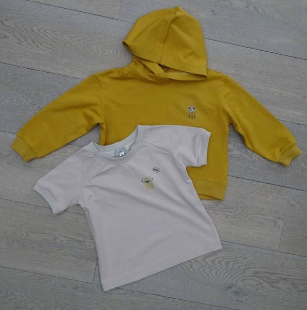 short + hoody sweaterstof uni oker, T-shirt uni beige