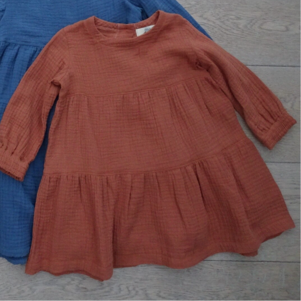 Jurk roestbruin gauze stroken