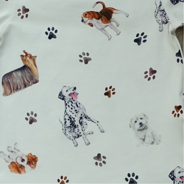 Tshirt dogs kleine print. Korte mouw, combinatiestof zwart uni of print all over.