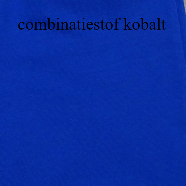 Tshirt Quad kleine print. Korte mouw, combinatiestof kobalt uni/grijsprint of print all over.