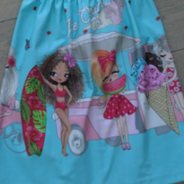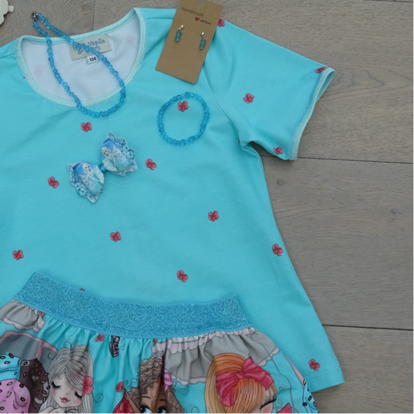 Rokje in printstof ijskar, uni print blauw bloemetje.