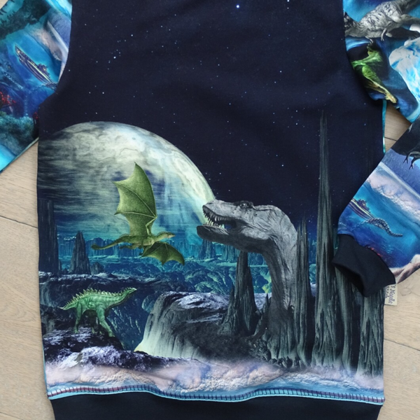 voorpand grote dinoprint/achterpand en mouw kleine print