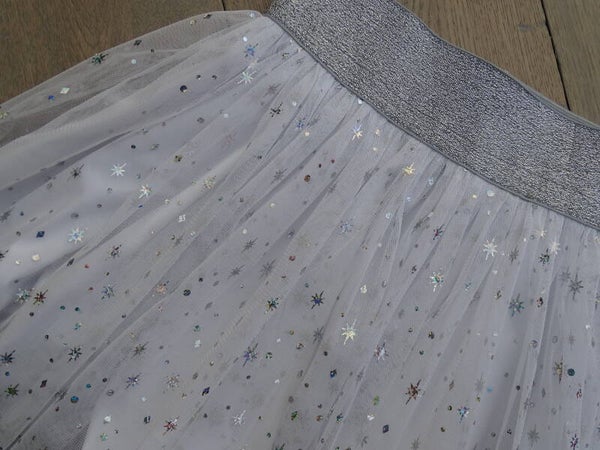 rokje tule, wit/ witte tule met zilver sterren