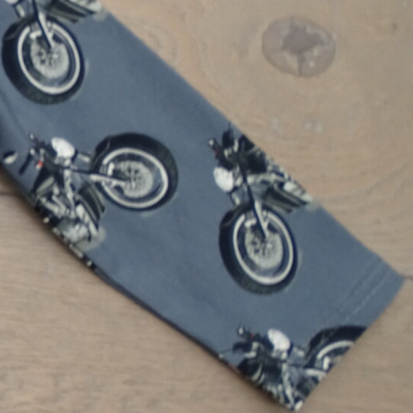 combintiestof mouw (achterkant): uni zwart of kleine print moto