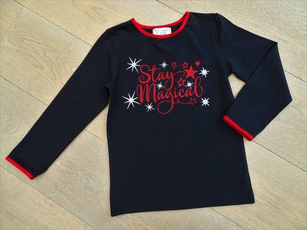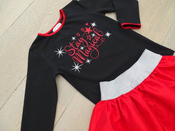 Rokje in rood tafta/shirt uni zwart "stay magical"