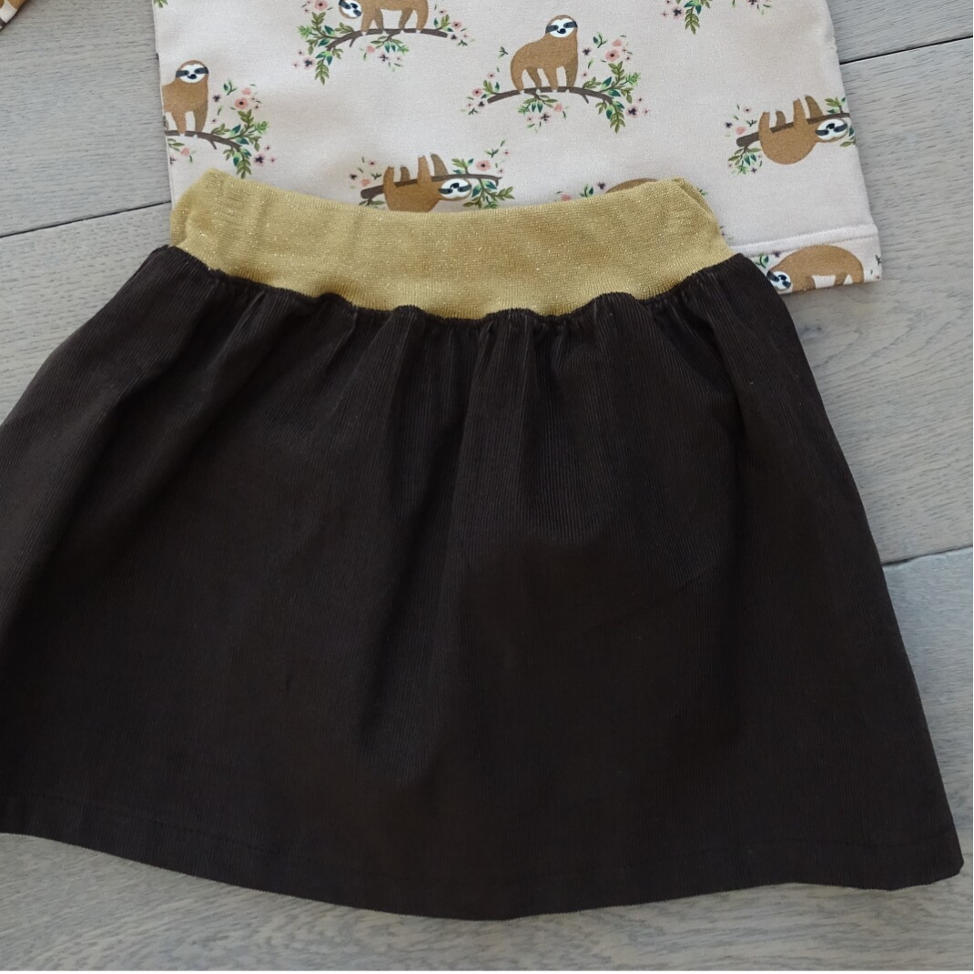 fronsrok boordstof goudglitter/shirt beige luiaard
