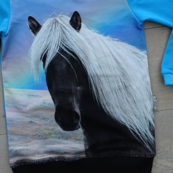 voorpand grote print/achterpand en mouw uni felblauw of zwart