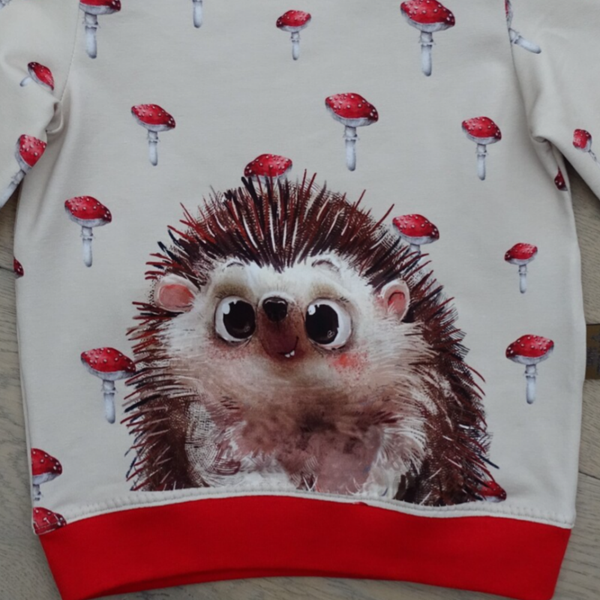 achterpand en mouwen kleine print paddenstoel