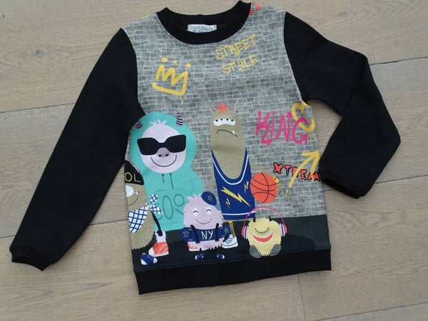 Sweater skater veel mannetjes, zwart