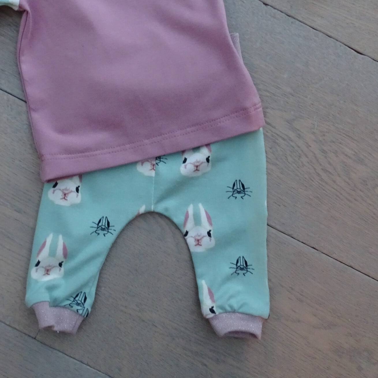 shirt uni oud roze, legging print konijntje