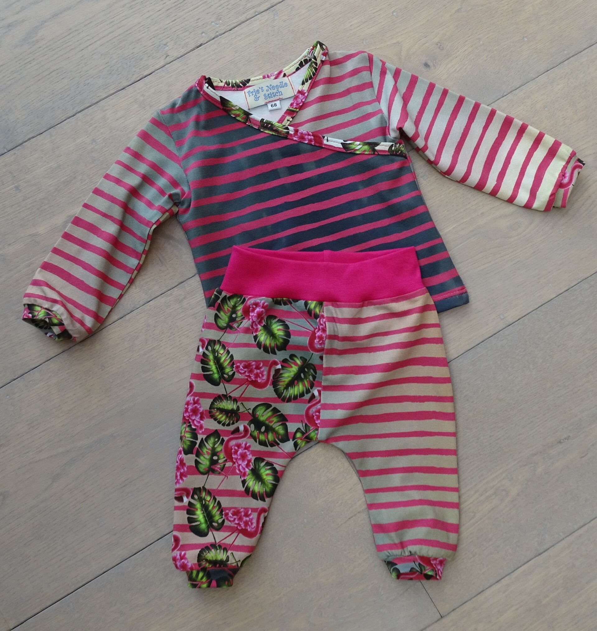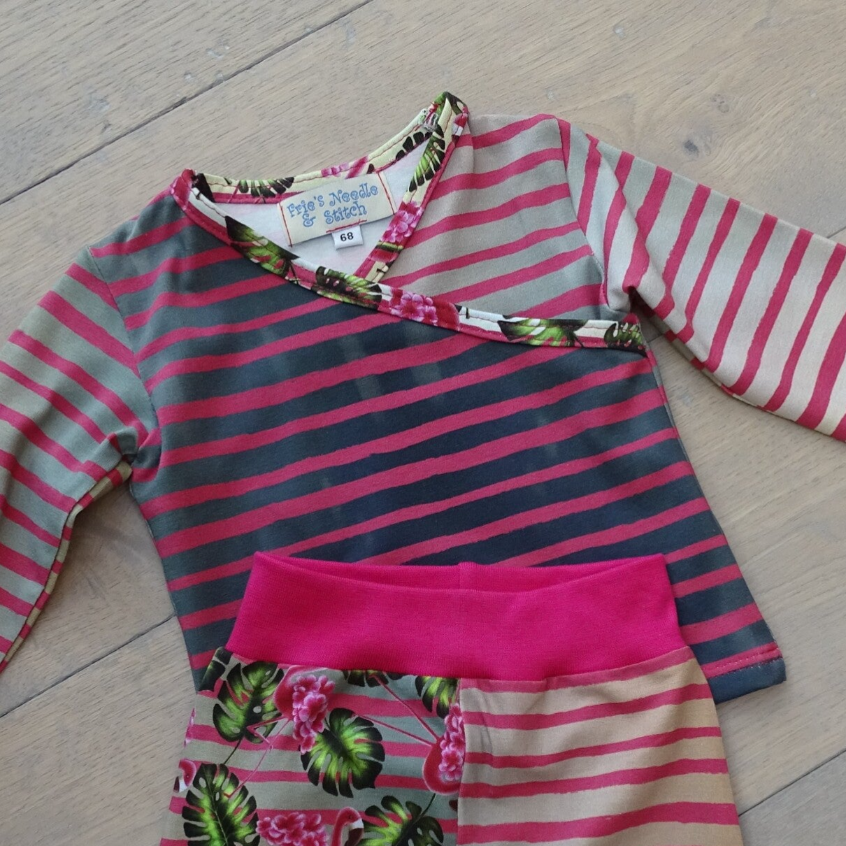 shirt streep flamingo fusia, legging 2 kleuren fusia