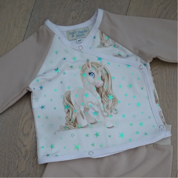 shirt print unicorn wit, legging uni beige