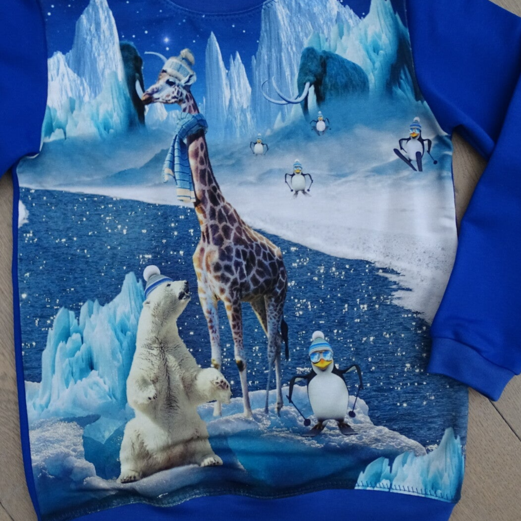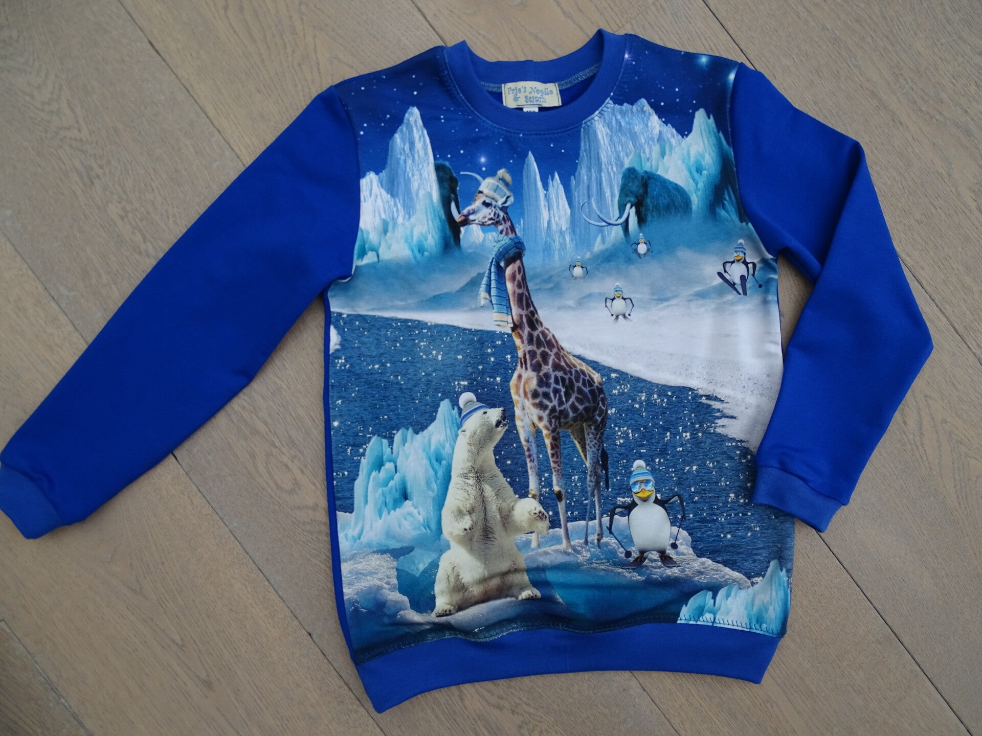 voorpand grote print/achterpand en mouw uni kobaltblauw of uni felblauw