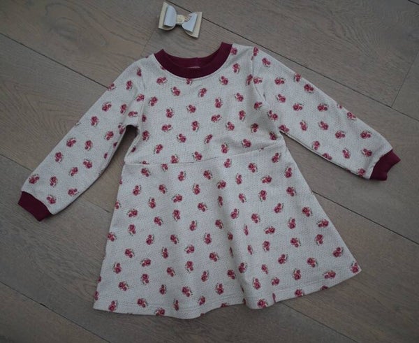 beige breiprint, kleine roosjes, boord keuze uit bordeaux of beige