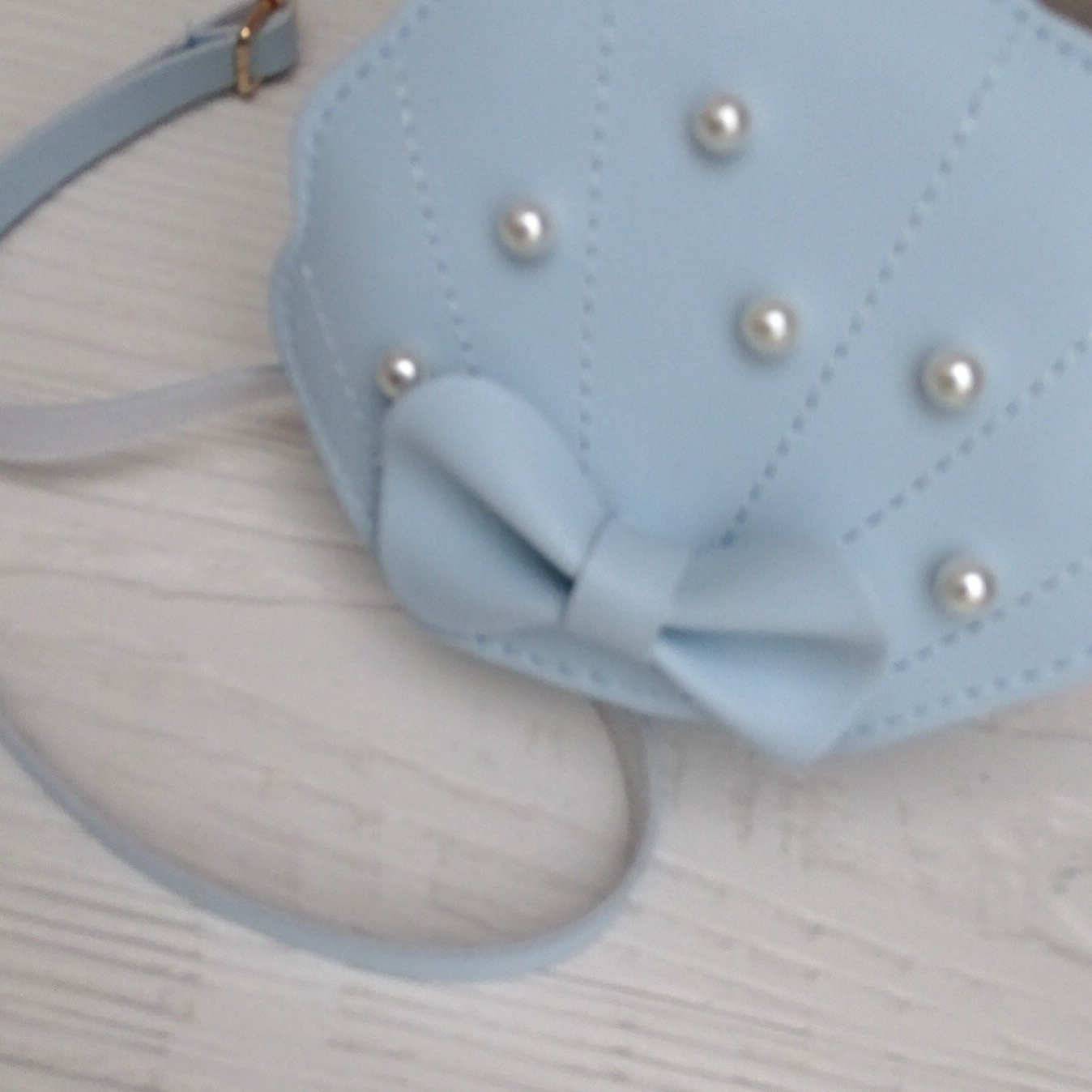 Handtasje, blauw schelp/strik met pareltjes